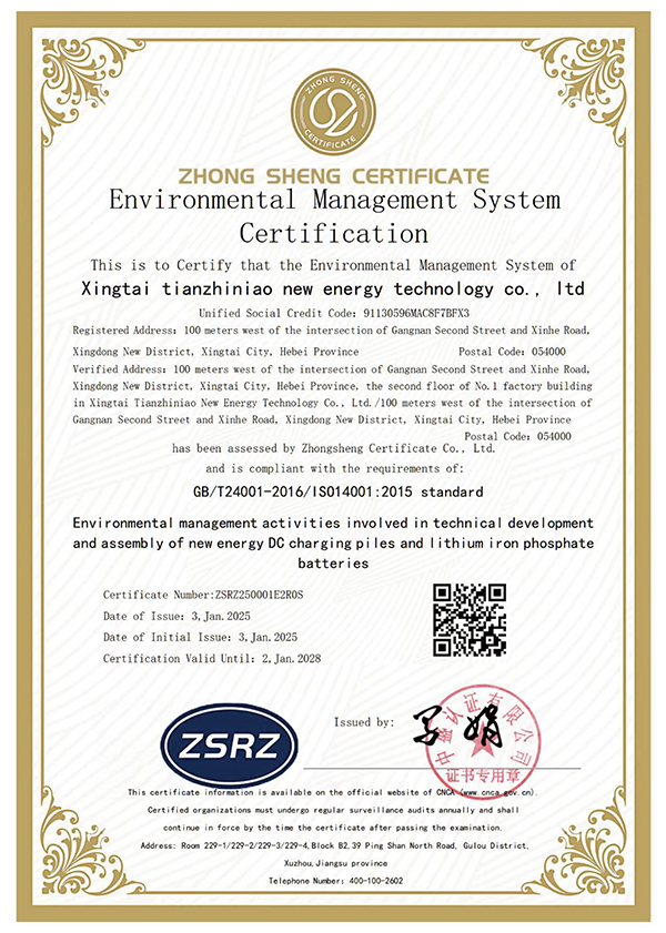 环境管理体系认证证书